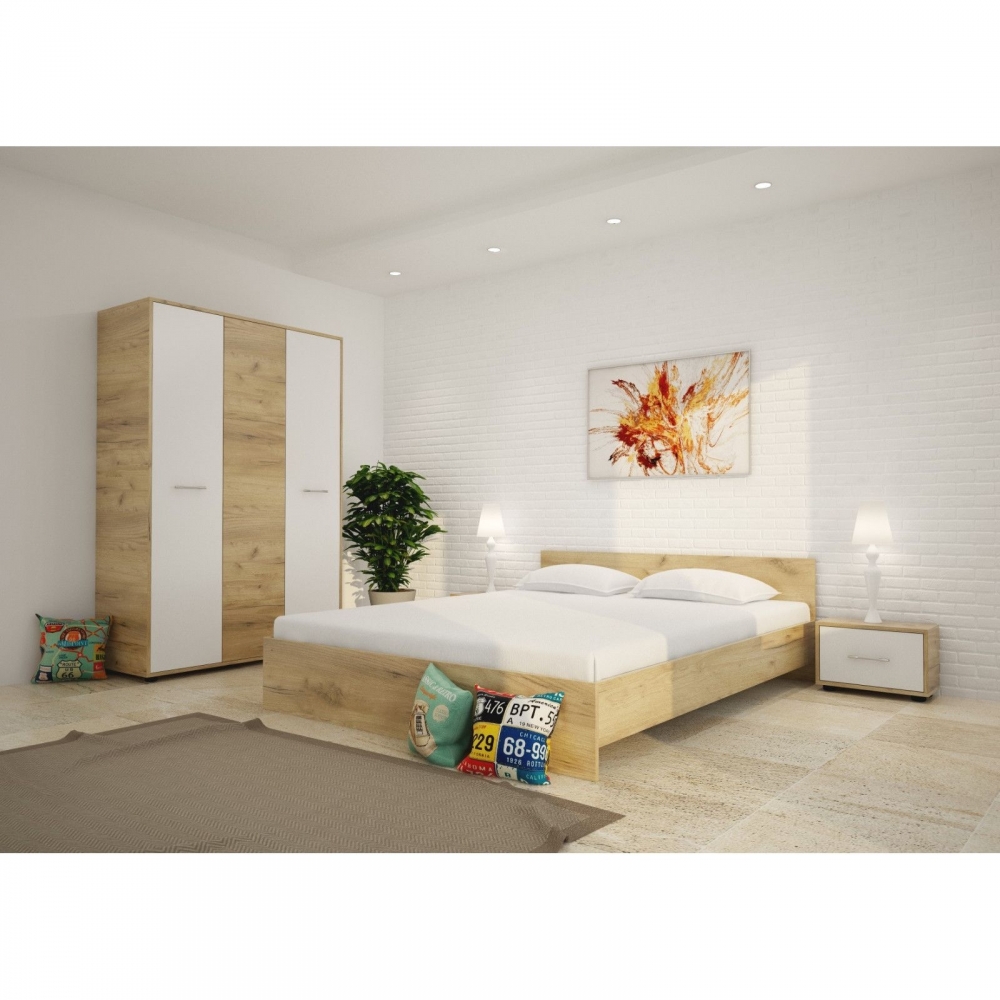 Dormitor Roxana Stejar cu Pat matrimonial 160 cm x 200 cm Dulap 3 usi 123 cm x 192 x 48 cm si Noptiere 44 cm x 32 cm x 23 cm