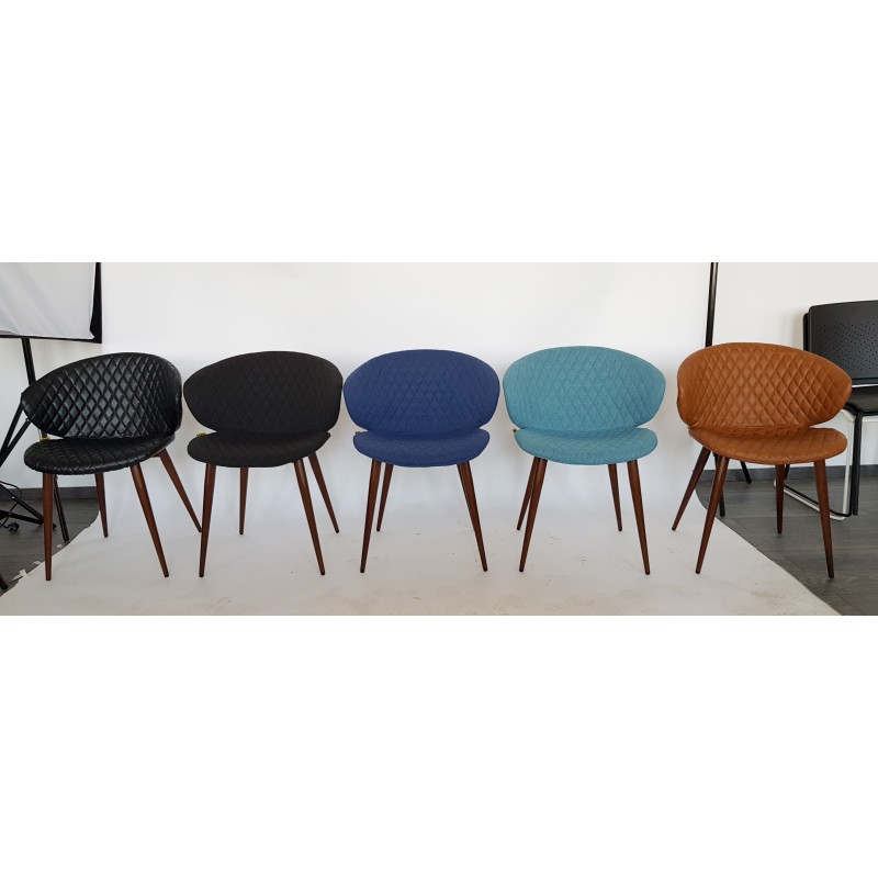 Pentru un plus de culoare, confort și eleganță scaunul Cover este tapițat integral. Culorile disponibile pentru scaunul varianta visitor cu material textil sunt: turcoaz, albastru sau negru. Scaunul este disponibil pe Eco Piele Maro sau Eco Piele Negru. Materialul este cusut decorativ, tip ”diamant.