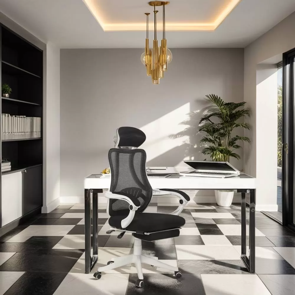 Scaun de birou ergonomic si suport de picioare OFF 927 alb