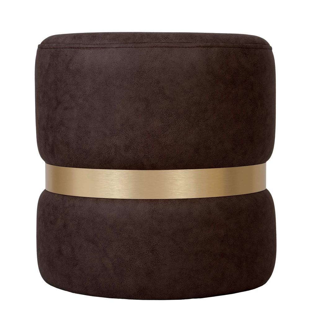 Cu o forma cilindrica si un ornament circular auriu, taburetul poate fi pozitionat in spatiul oricarei amenajari moderne.